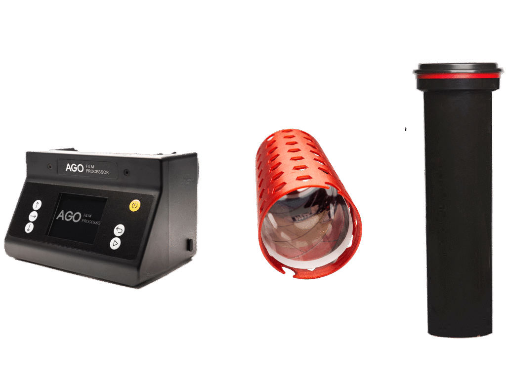AGO Film Processor paired with a standard Paterson 5 tank and our specialized Paper 5 reel for up to 8×10 size prints makes a powerful darkroom print processor setup.